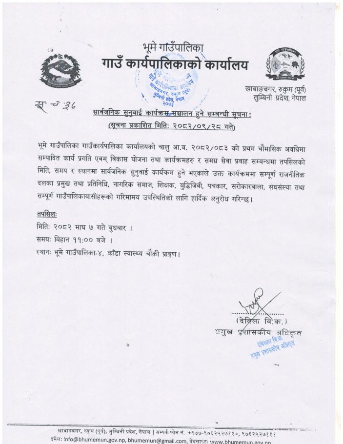 सार्वजनिक सुनुवाइ कार्यक्रम सञ्चालन हुने सम्बन्धी सूचना ।